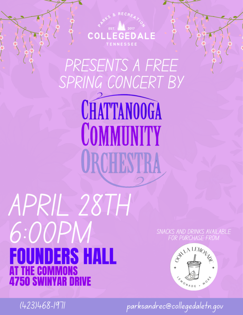 “Partnering with the CCO is about more than music, it’s about bringing people together.” stated Christina Clark, Collegedale Parks & Recreation Supervisor. “Offering this free concert ensures that everyone in our community can experience the joy and connection that live music creates.”
