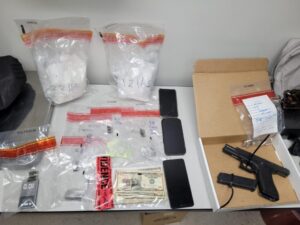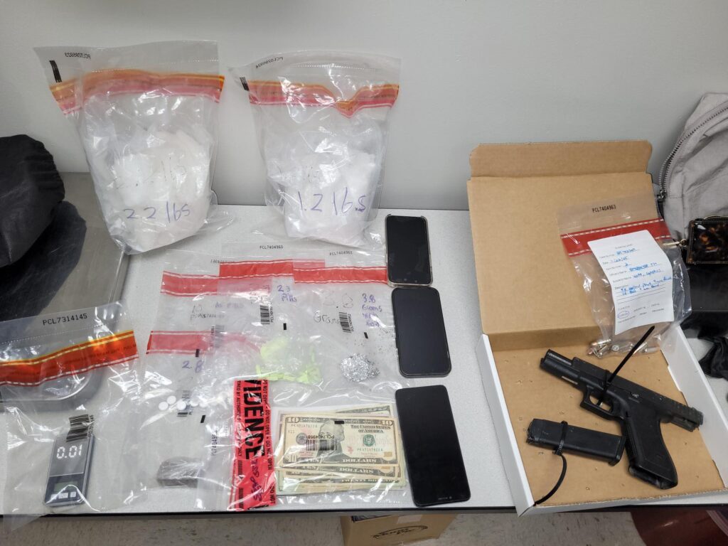 Upon a search of the Cadillac, officers discovered: 23 Xanax bars, 10 Oxycodone pills, 28 Grams of Fentanyl, 3.8 Grams of suspect fentanyl, 3.4 pounds of Methamphetamine, and $1,110 in cash. A Glock pistol was recovered next to Word when he was apprehended.